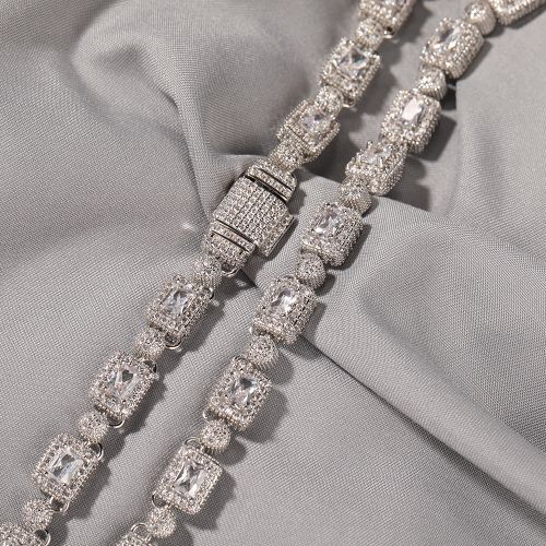 8mm Square Sparkling Cluster Cubic Zirconia Tennis Link Chain for Men Women8mm Square Sparkling Cluster Cubic Zirconia Tennis Link Chain for Men Women