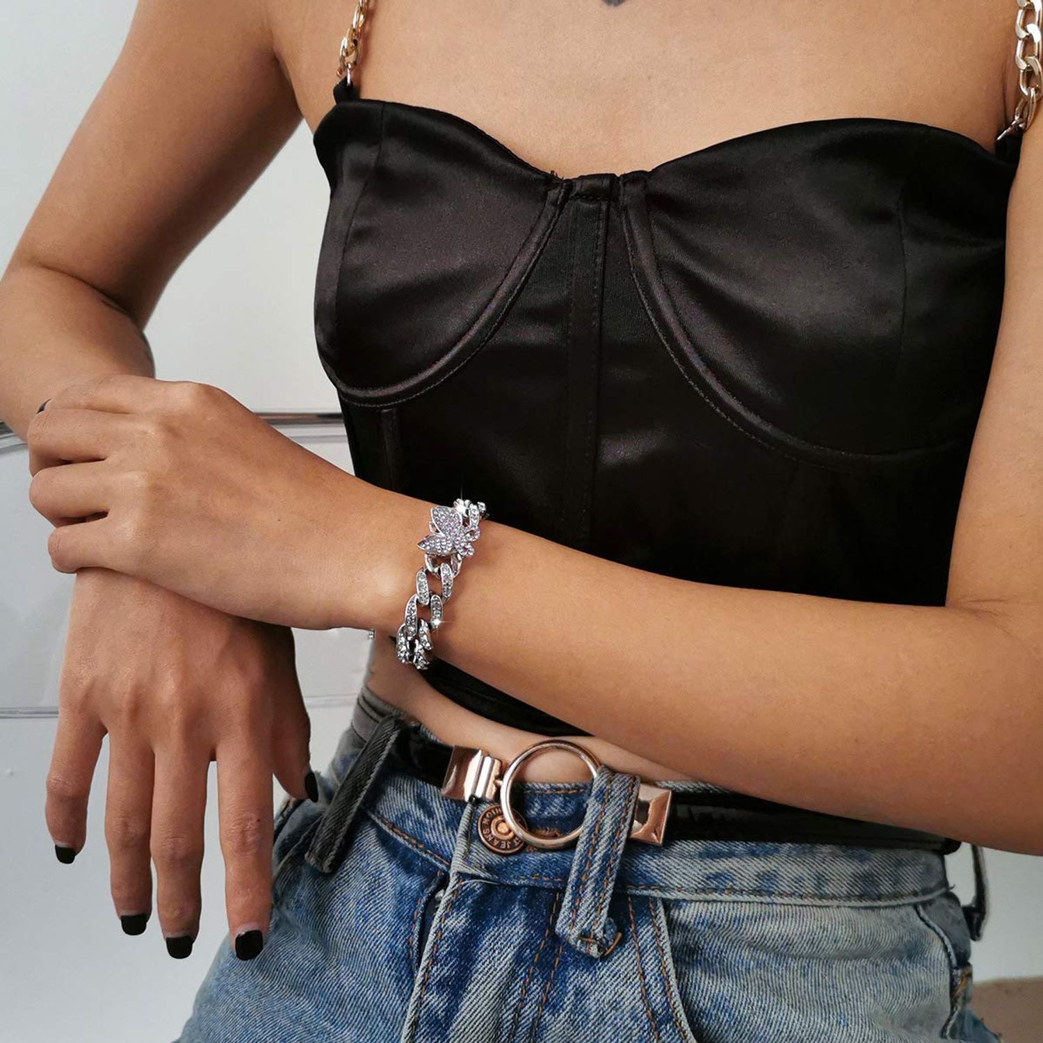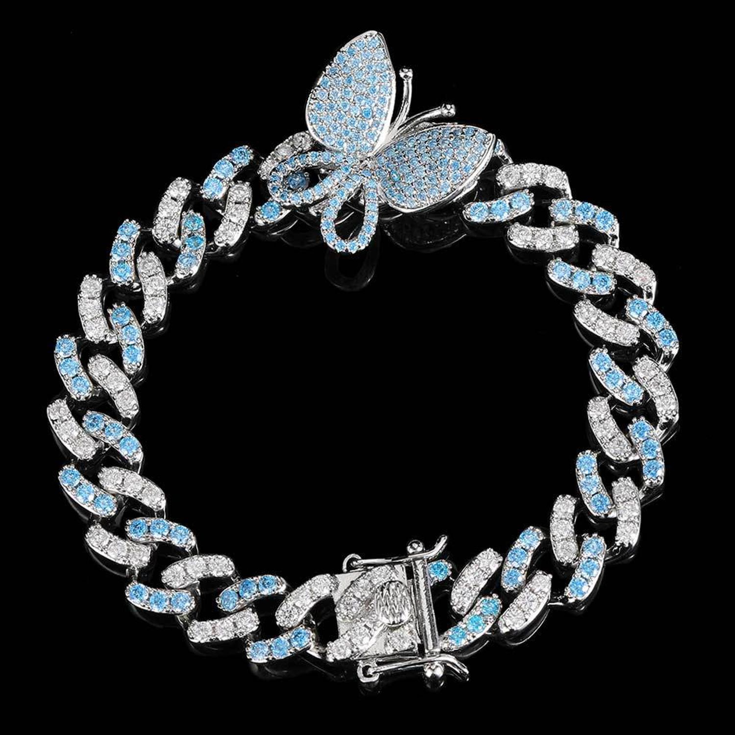9mm Iced Butterfly Cuban Link Bracelet for Men Women