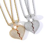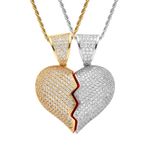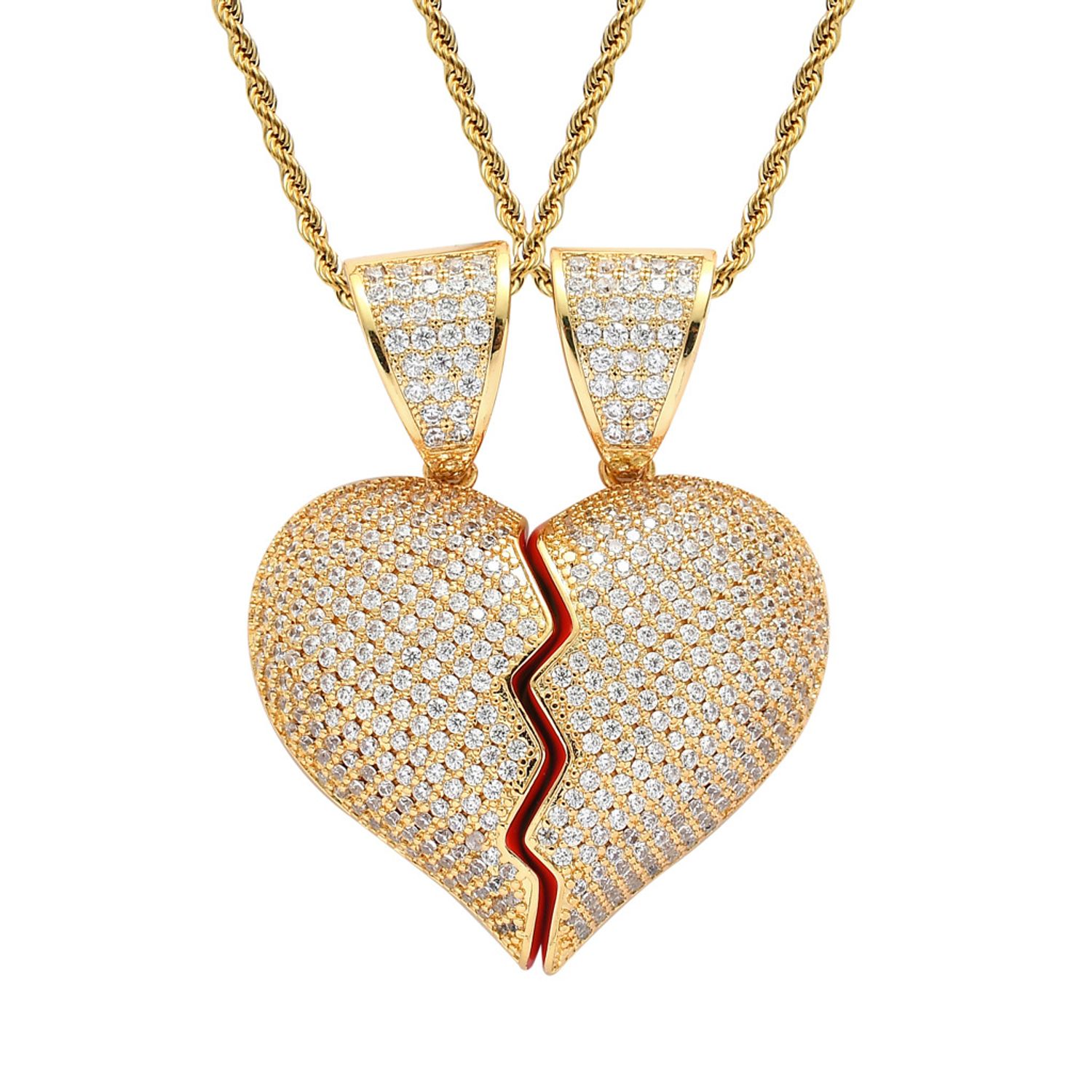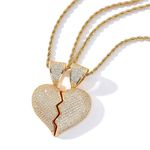 Iced Out Heart-Shaped Combinations Pendant Necklace for Couple Men Women Couple