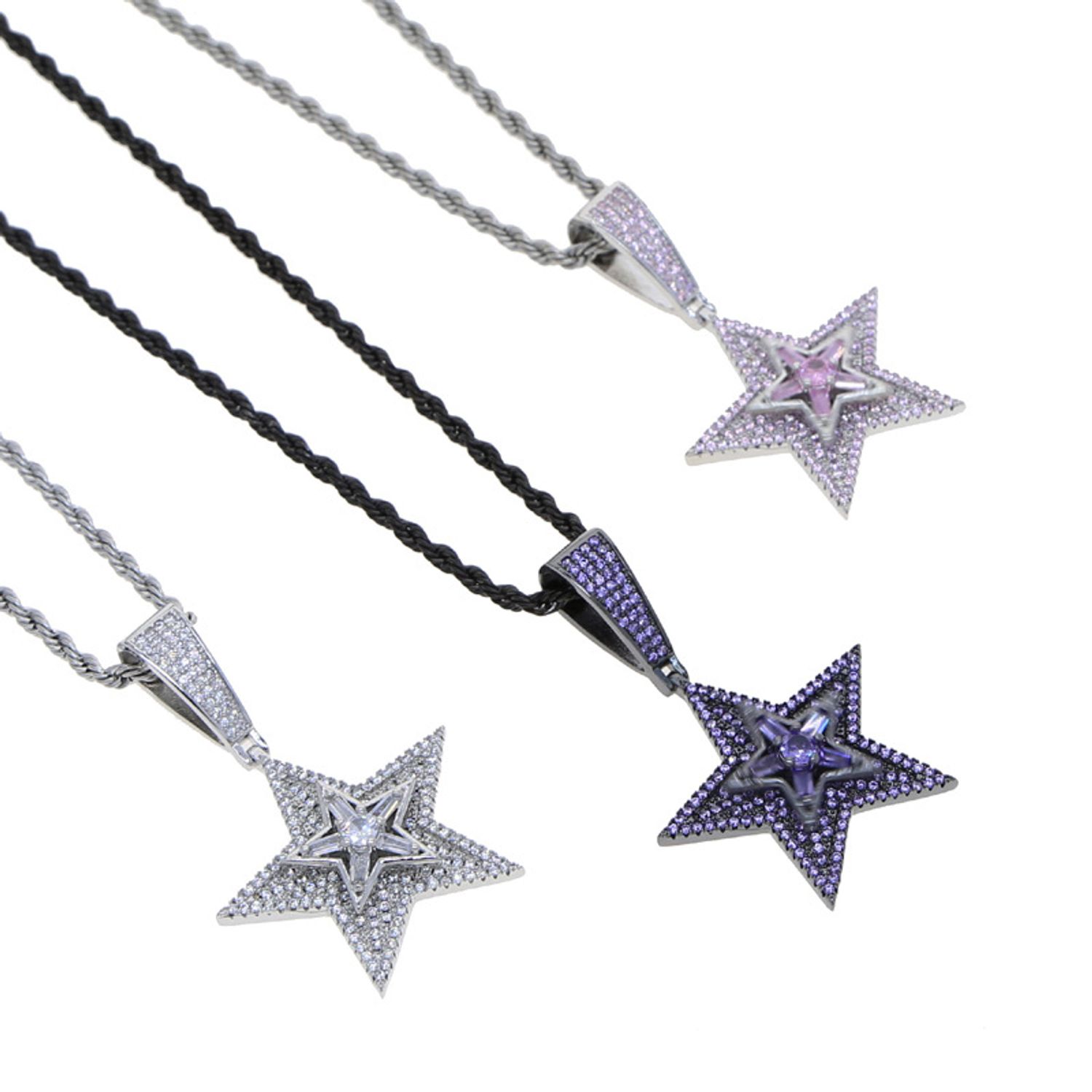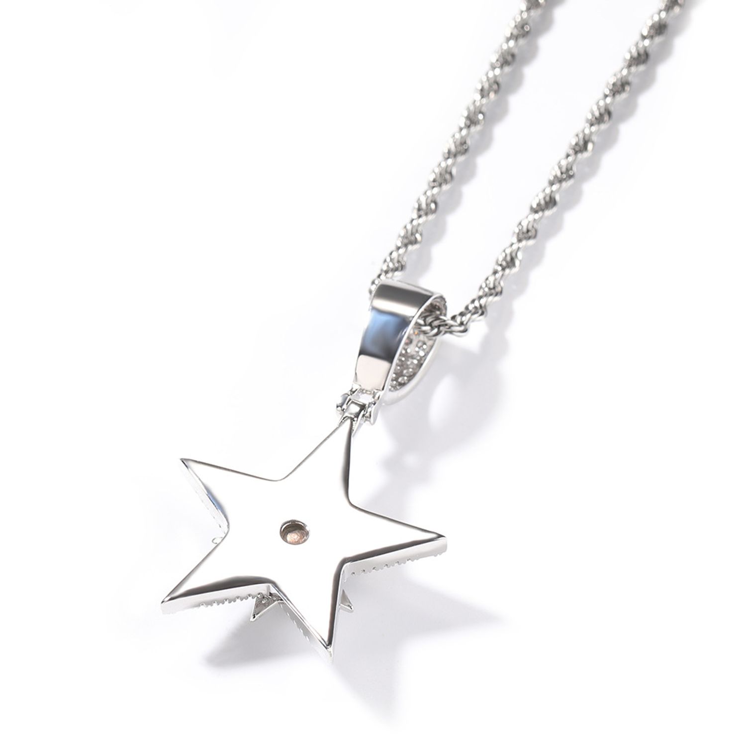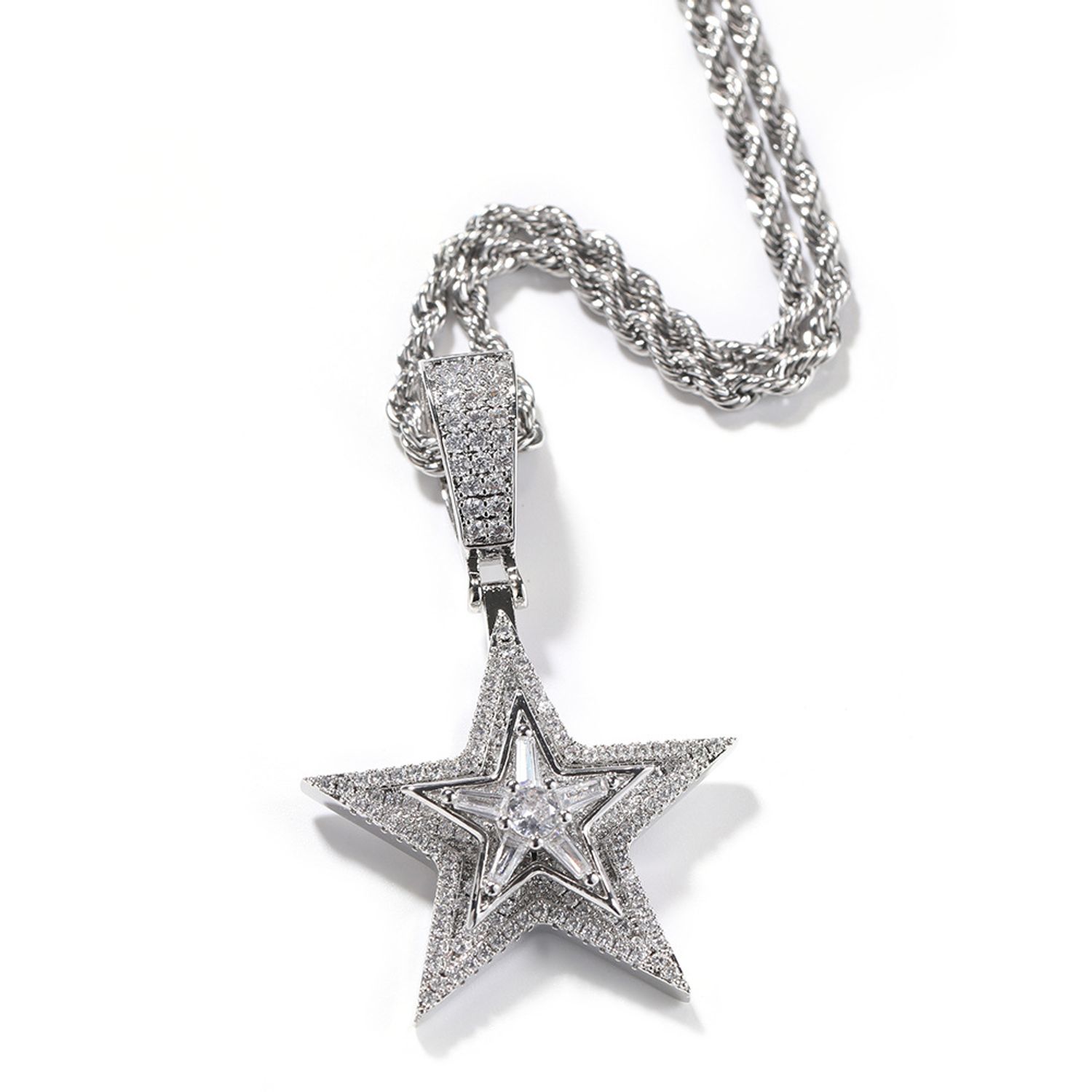 Iced Out Rotatable Star Pendant Necklace for Men Women