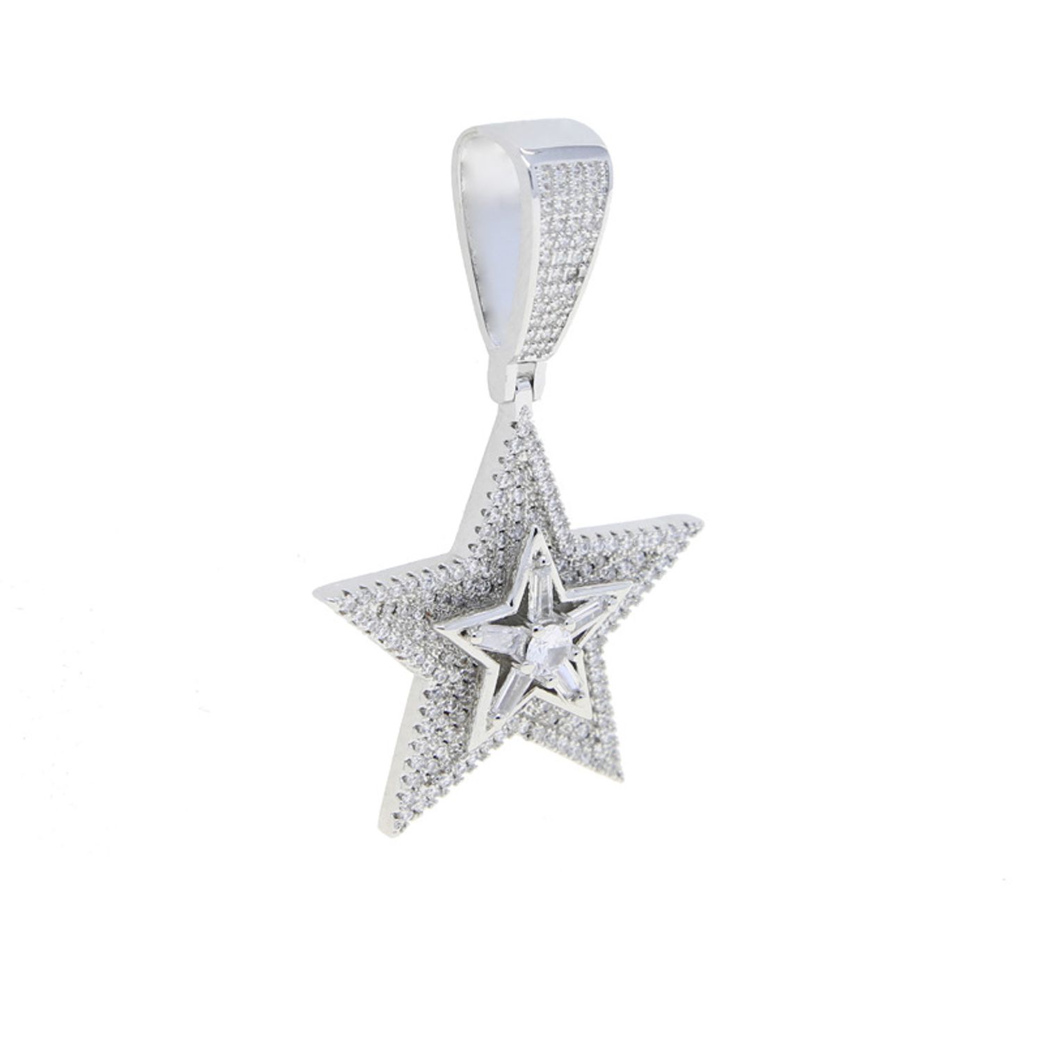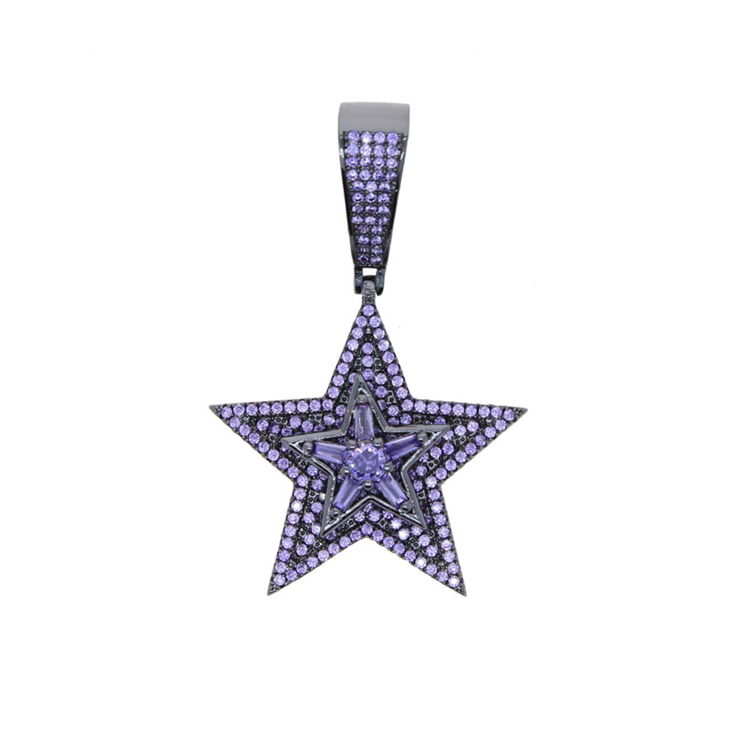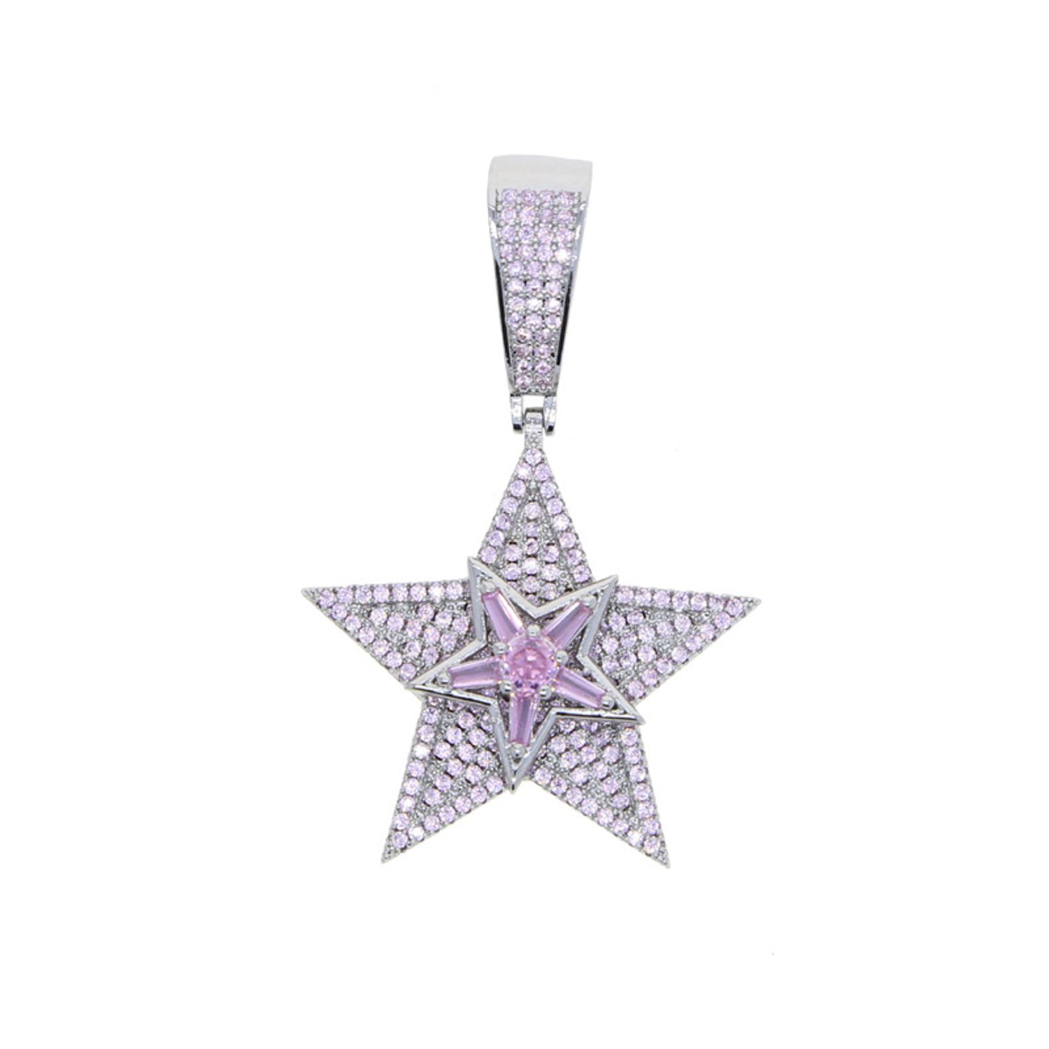 Iced Out Rotatable Star Pendant Necklace for Men Women