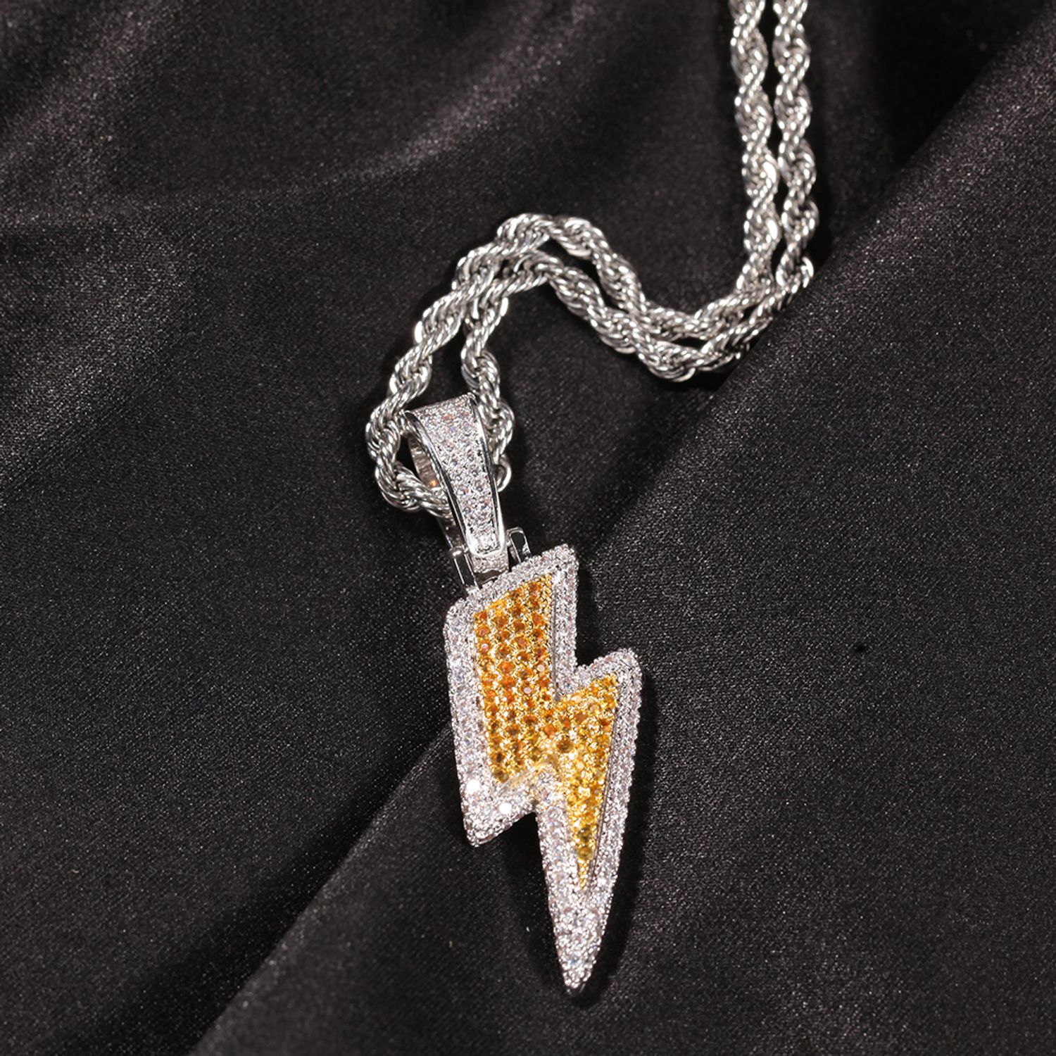 Iced Lightning Bolt Pendant & 3mm 24" Rope Chain Necklace for Men Women
