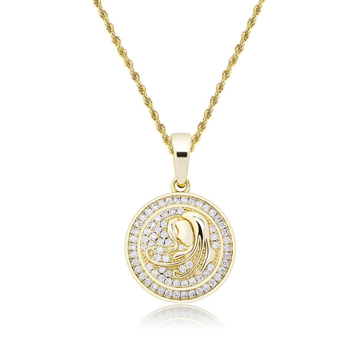 18K Gold Plated Iced Out Zodiac Signs Pendant Necklace for Men Women